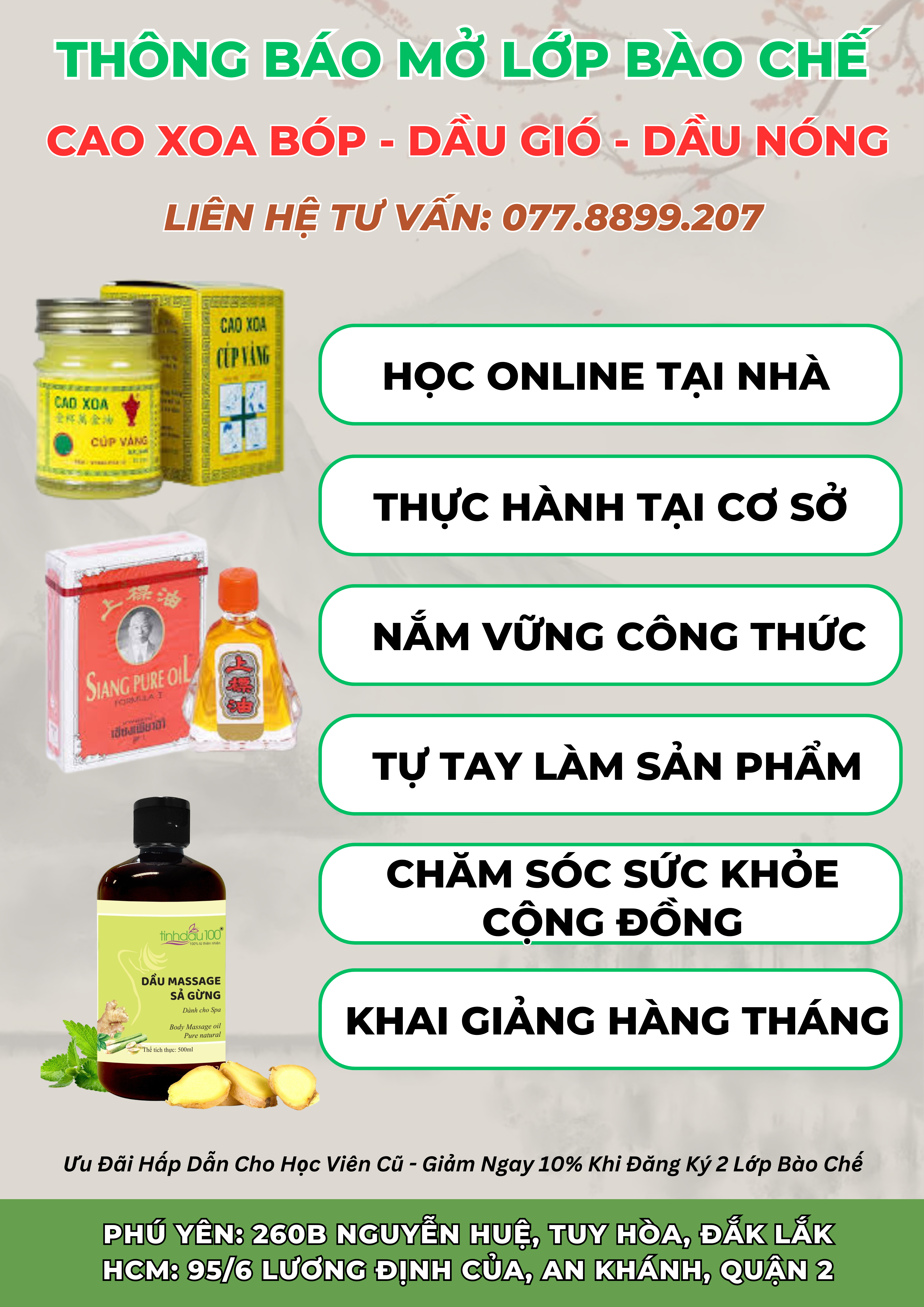 KHÓA HỌC BÀO CHẾ CAO XOA BÓP – DẦU NÓNG – DẦU GIÓ ĐÔNG Y